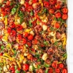 This easy sheet pan sausage gnocchi features crispy no-boil gnocchi, juicy sausage, roasted veggies, and melty cheese—all cooked together on one pan for a simple, no-fuss dinner.